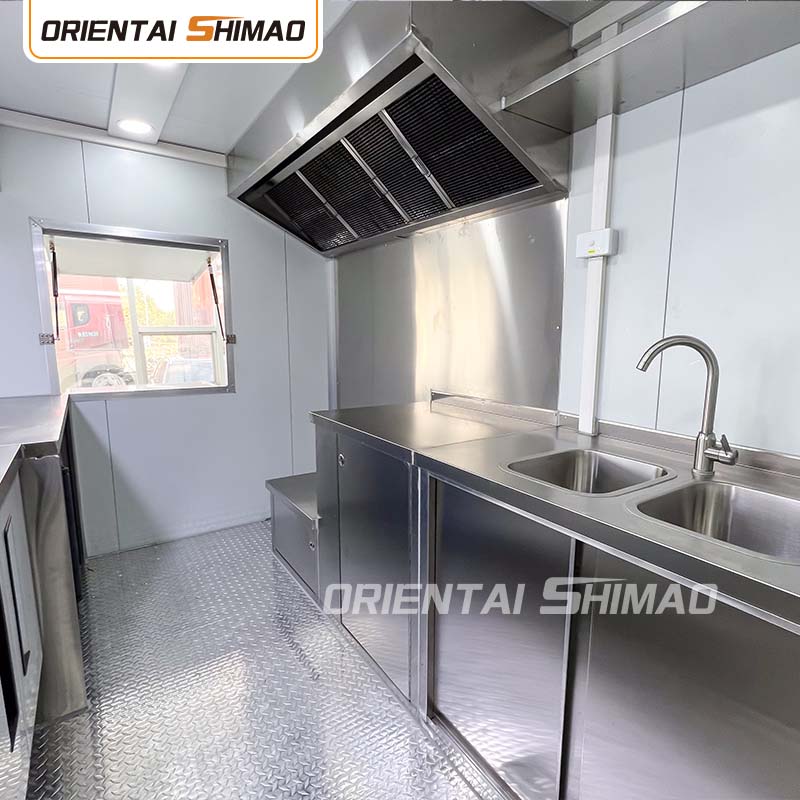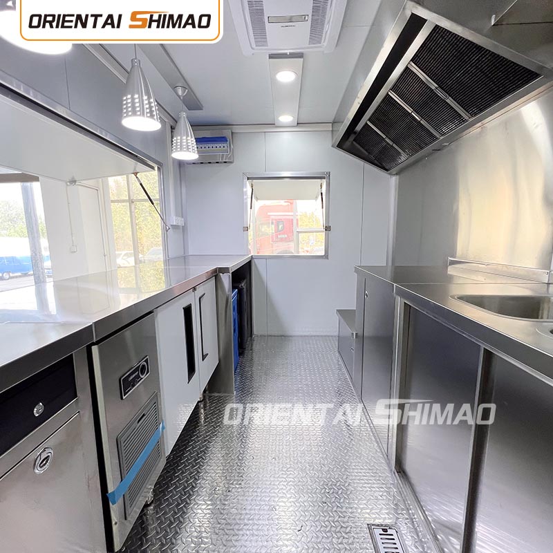স্টেইনলেস স্টিলের অভ্যন্তর: অভ্যন্তরটি স্টেইনলেস স্টিল দিয়ে তৈরি, একটি শক্তিশালী এবং টেকসই অভ্যন্তর নিশ্চিত করে যা পরিষ্কার করা এবং বজায় রাখা সহজ এবং খাদ্য স্বাস্থ্যবিধি মান পূরণ করে। স্টেইনলেস স্টিলের ব্যবহার শুধুমাত্র খাদ্য ট্রাকের পরিষেবা জীবনকে উন্নত করে না, তবে খাদ্য তৈরির প্রক্রিয়ার স্বাস্থ্যবিধি এবং নিরাপত্তা নিশ্চিত করে।