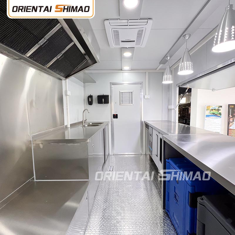 স্পেস অপ্টিমাইজেশন: ফুড ট্রাকের অভ্যন্তরীণ স্থানের সম্পূর্ণ ব্যবহার করুন এবং বহুতল নকশা, ভাঁজযোগ্য বা স্লাইডিং আসবাবপত্র ইত্যাদির মাধ্যমে স্থানের ব্যবহার উন্নত করুন।