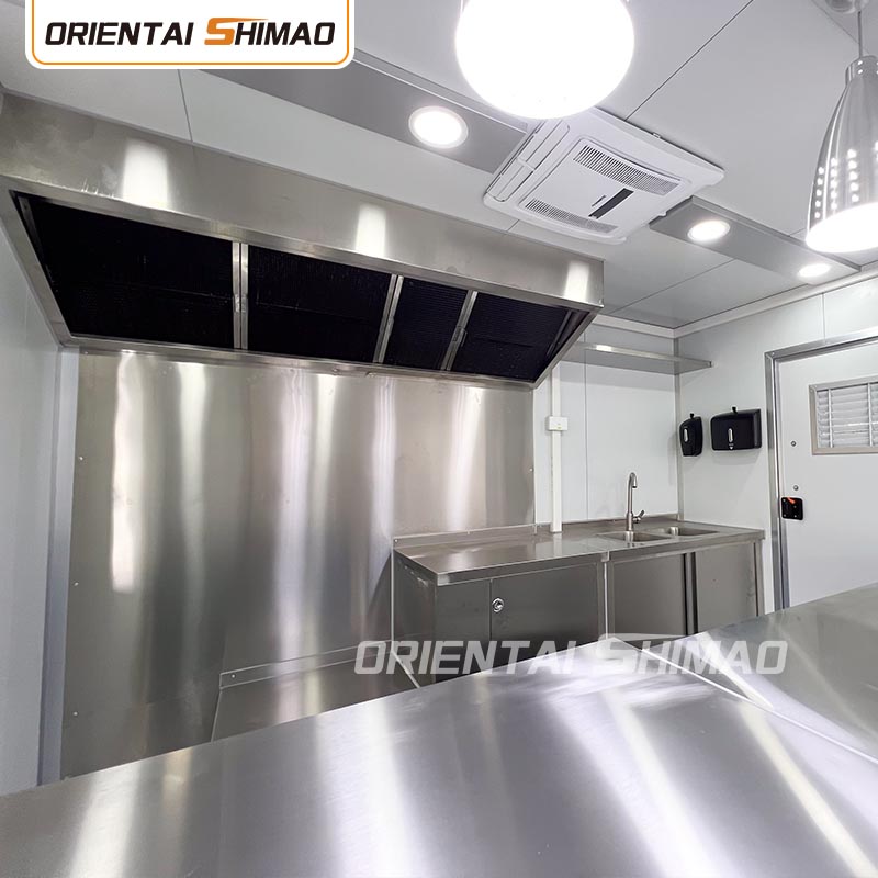 অভ্যন্তরীণ বিন্যাস: স্থানের সর্বাধিক ব্যবহার নিশ্চিত করতে রান্নাঘর, খাবার ঘর, স্টোরেজ এলাকা এবং অন্যান্য এলাকার যুক্তিসঙ্গত পরিকল্পনা। একই সময়ে, ব্যবসায়িক প্রয়োজন অনুযায়ী বিভিন্ন কার্যকরী এলাকা স্থাপন করা হয়, যেমন উৎপাদন এলাকা, গরম করার এলাকা, বিক্রয় এলাকা ইত্যাদি, অপারেশনের সুবিধার্থে এবং অপারেশনাল দক্ষতা উন্নত করতে।