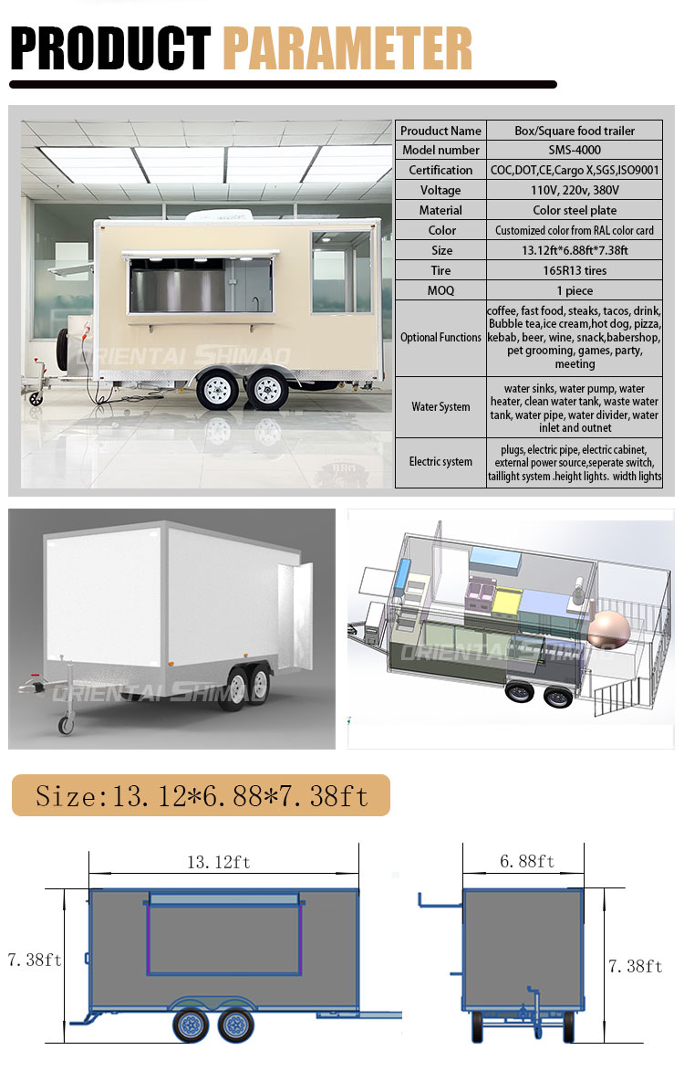 আমরা বিক্রয়ের জন্য মোবাইল ফুড কার্ট অফার করতে পারি সার্টিফিকেশন: DOT, CE, SGS, SCI, ISO, COC,