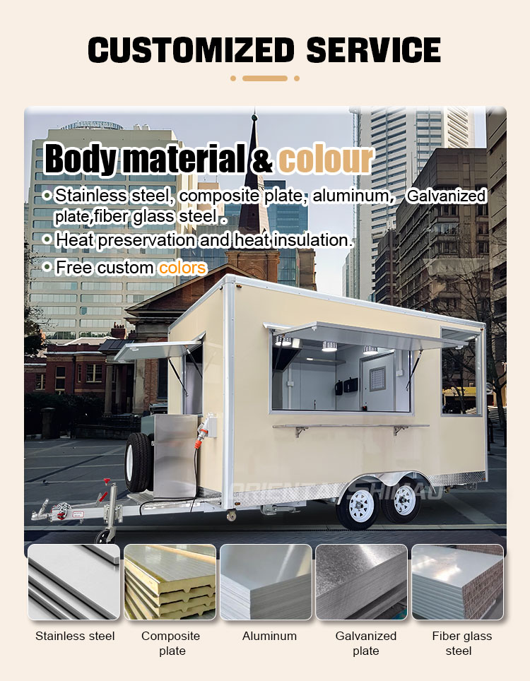 উপাদান এবং প্রক্রিয়া: খাদ্য ট্রাকের চেহারা সুন্দর এবং টেকসই তা নিশ্চিত করতে উচ্চ-মানের উপকরণ এবং উন্নত উত্পাদন প্রক্রিয়া চয়ন করুন।