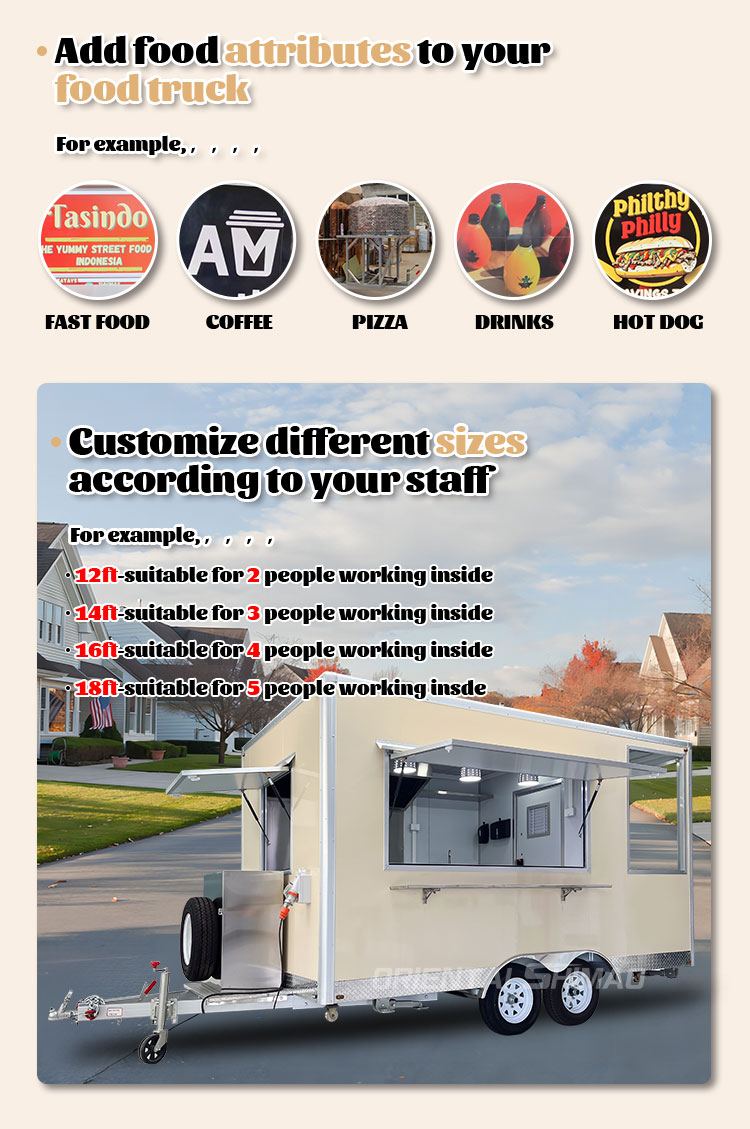 মডেলিং এবং শৈলী: খাদ্য ট্রাকের চেহারা মডেলিং এবং শৈলী গ্রাহকদের আকৃষ্ট করার জন্য একটি গুরুত্বপূর্ণ কারণ। এটি গ্রাহকদের ব্র্যান্ড ইমেজ, ব্যবসার বৈশিষ্ট্য বা ব্যক্তিগত পছন্দ অনুযায়ী কাস্টমাইজ করা যেতে পারে, যেমন সুবিন্যস্ত নকশা, বিপরীতমুখী শৈলী, আধুনিক সরলতা এবং তাই।