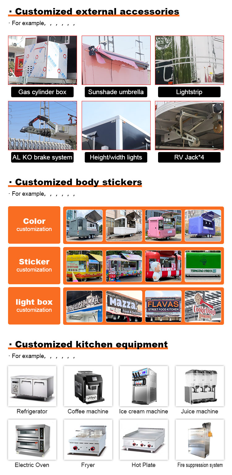 ফুড কার্ট মোবাইল কিচেন কমার্শিয়াল রেস্তোরাঁর সরঞ্জাম ক্যাটারিং ইলেকট্রিক ফুড ট্রেলার স্ট্রিট ইউজ ফুড ট্রাক