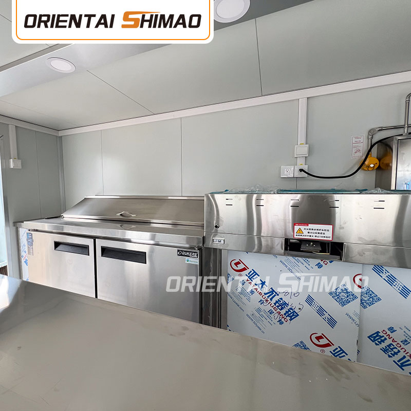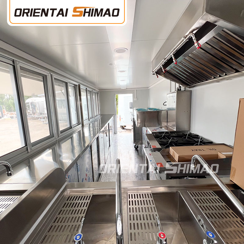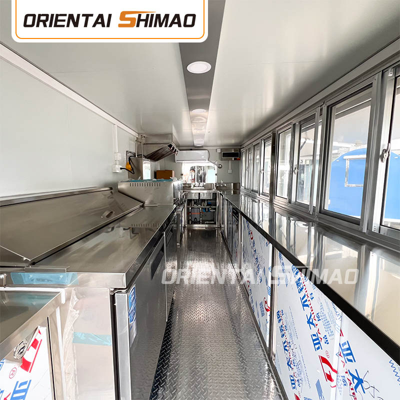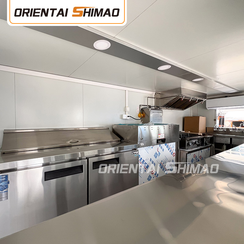 অভ্যন্তরীণ কাঠামোর ডিজাইনেও আমরা অসাধারণ কারুকাজ দেখাই। অনন্য উচ্চারণ প্রক্রিয়া প্রাচীর এবং ওয়ার্কবেঞ্চের মধ্যে নিরবচ্ছিন্ন সংযোগ তৈরি করে, এই নকশাটি শুধুমাত্র সামগ্রিক নান্দনিকতাই বাড়ায় না, তবে পরিষ্কারের কাজকে ব্যাপকভাবে সহজ করে তোলে, আঠালো ব্যবহার না করে, আঠালো ব্যবহার না করে, খোলা আঠালো, বিবর্ণতার মতো সমস্যাগুলি এড়িয়ে যায় এবং একই সাথে ময়লা তৈরির সম্ভাবনাও হ্রাস করে এবং পরিচ্ছন্ন পরিবেশ তৈরি করে। বিশদ এবং নিয়ন্ত্রণের প্রতি এই মনোযোগ হল ওরিয়েন্টাল শিমাও ফ্র্যাঞ্চাইজ-রেডি ফুড ট্রেলারের প্রতিযোগিতামূলক বাজারে দাঁড়ানোর ক্ষমতার চাবিকাঠি।