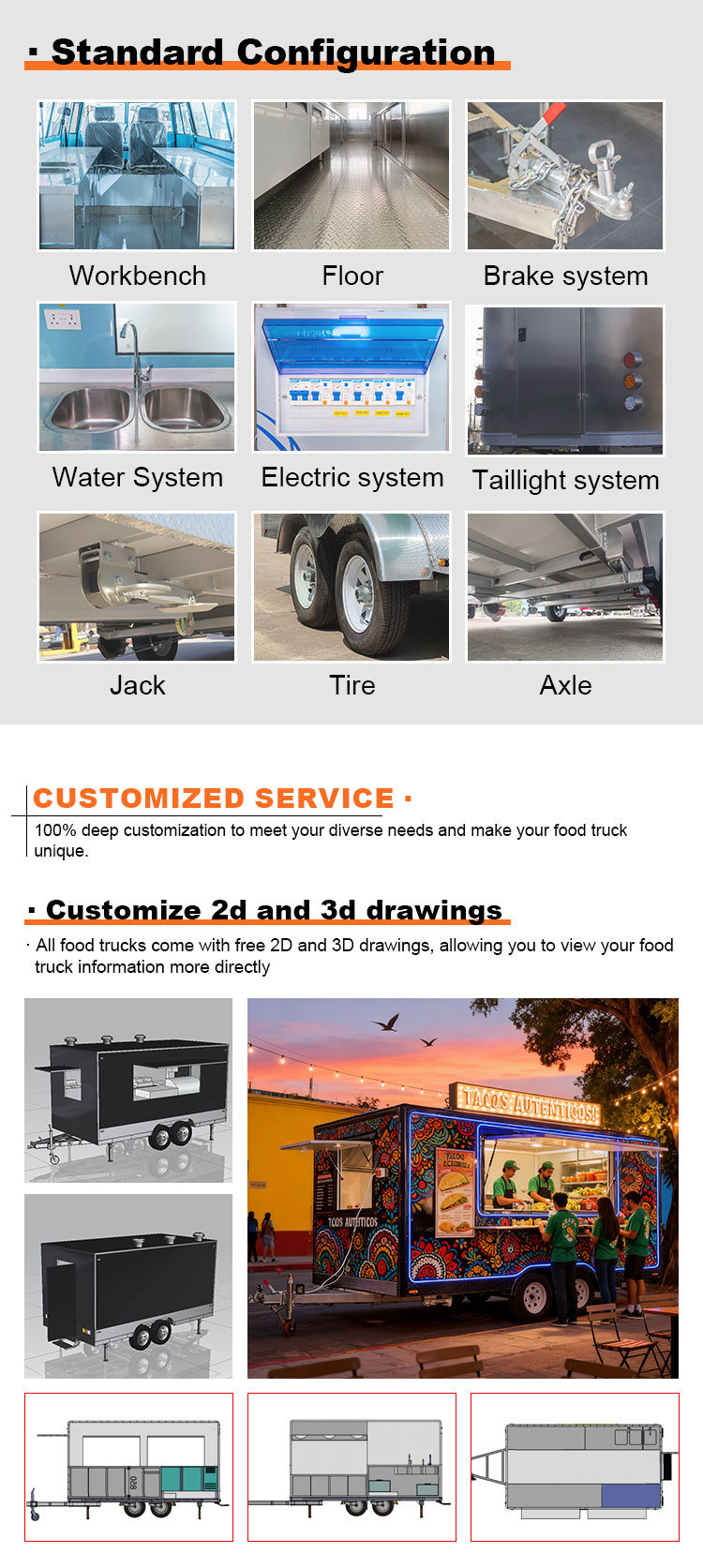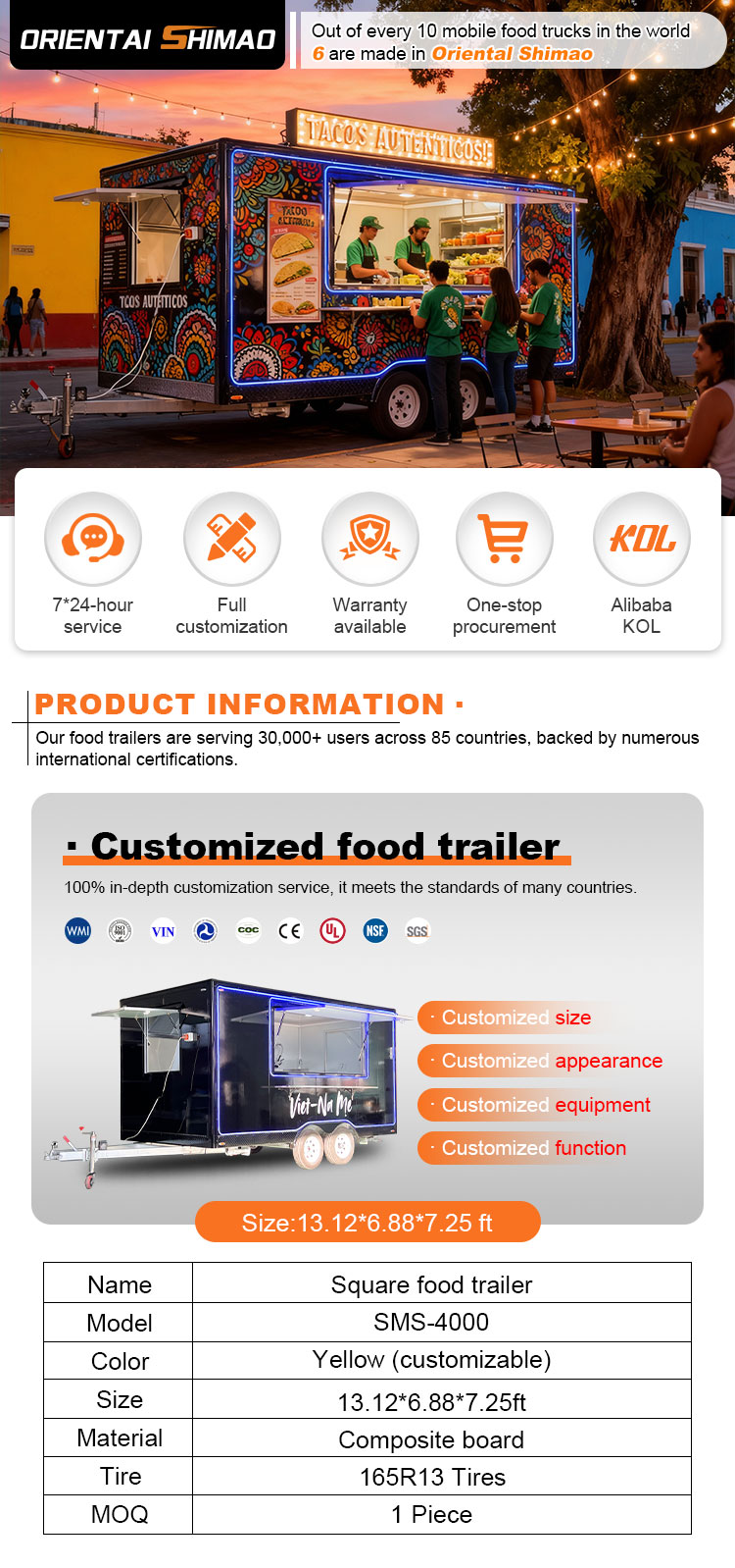 আমরা ফুড ক্যাটারিং ট্রেলার সার্টিফিকেশন অফার করতে পারি: DOT, CE, SGS, SCI, ISO, COC,