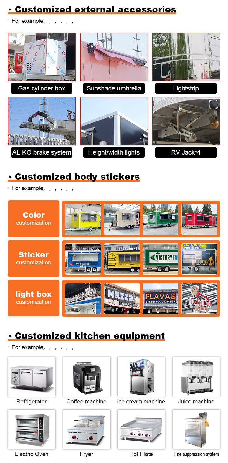 ফুড কার্ট মোবাইল কিচেন কমার্শিয়াল রেস্তোরাঁর সরঞ্জাম ক্যাটারিং ইলেকট্রিক ফুড ট্রেলার স্ট্রিট ইউজ ফুড ট্রাক