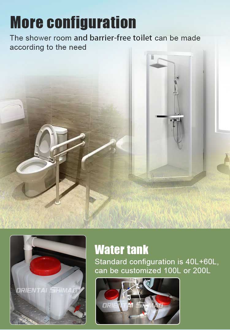 ওরিয়েন্টাল শিমাও মোবাইল টয়লেট হাউস বিস্তৃত বহিরঙ্গন সাইট, অস্থায়ী সুবিধার প্রয়োজন এবং জরুরী পরিস্থিতিতে বিস্তৃত পরিসরের জন্য সর্বোত্তম স্যানিটেশন সমাধান। এর আধুনিক নকশা এবং দুর্দান্ত বৈশিষ্ট্য সেট সহ, এটি ব্যবহারকারীদের কেবল একটি আরামদায়ক টয়লেটিংয়ের অভিজ্ঞতা সরবরাহ করে না, তবে পুরো ভেন্যুর স্বাস্থ্যবিধি মানকে বাড়িয়ে তোলে। এটি একটি বৃহত ইভেন্ট, নির্মাণ সাইট বা জরুরী প্রতিক্রিয়া, এই পোর্টেবল টয়লেট ট্রাকটি একটি পরিষ্কার এবং সুবিধাজনক পরিবেশ নিশ্চিত করে।
