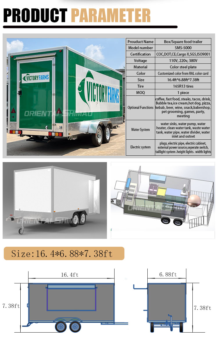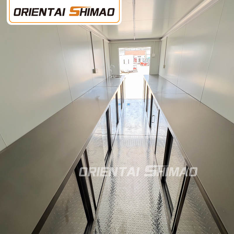 আকার কাস্টমাইজেশন: প্রথাগত সীমানা ছাড়িয়ে, আমরা প্রচলিত ফুড ট্রাকের আকার কাঠামো ভেঙে দিই এবং আপনাকে আকার কাস্টমাইজেশন সমাধানের সীমাহীন সম্ভাবনা সরবরাহ করি। আপনি একটি মিনি ফুড ট্রাক খুঁজছেন যা ছোট এবং সূক্ষ্ম, শহরের গলিতে ভ্রমণ করা সহজ, বা একটি বিলাসবহুল মোবাইল রেস্তোঁরা যা আরও গ্রাহক এবং সরঞ্জাম মিটমাট করার জন্য একটি প্রশস্ত জায়গা পেতে চায়, আমরা সঠিকভাবে পরিমাপ করতে পারি এবং যত্ন সহকারে আপনার নির্দিষ্ট চাহিদা অনুযায়ী ডিজাইন করতে পারি একটি খাদ্য ট্রাকের আকার যা প্রকৃত চাহিদা পূরণ করে এবং সৃজনশীলতায় পূর্ণ।