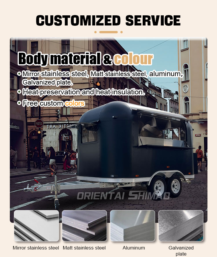মডেলিং এবং শৈলী: খাদ্য ট্রাকের চেহারা মডেলিং এবং শৈলী গ্রাহকদের আকৃষ্ট করার জন্য একটি গুরুত্বপূর্ণ কারণ। এটি গ্রাহকদের ব্র্যান্ড ইমেজ, ব্যবসার বৈশিষ্ট্য বা ব্যক্তিগত পছন্দ অনুযায়ী কাস্টমাইজ করা যেতে পারে, যেমন সুবিন্যস্ত নকশা, বিপরীতমুখী শৈলী, আধুনিক সরলতা এবং তাই।