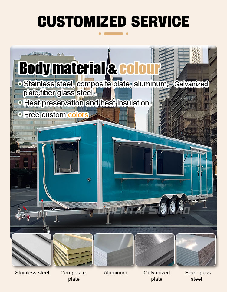 উপাদান এবং প্রক্রিয়া: খাদ্য ট্রাকের চেহারা সুন্দর এবং টেকসই তা নিশ্চিত করতে উচ্চ-মানের উপকরণ এবং উন্নত উত্পাদন প্রক্রিয়া চয়ন করুন।