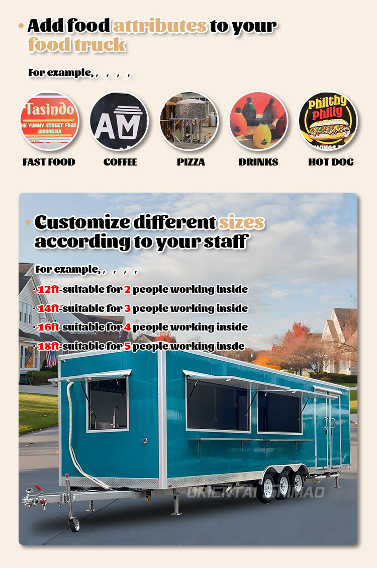 মডেলিং এবং শৈলী: খাদ্য ট্রাকের চেহারা মডেলিং এবং শৈলী গ্রাহকদের আকৃষ্ট করার জন্য একটি গুরুত্বপূর্ণ কারণ। এটি গ্রাহকদের ব্র্যান্ড ইমেজ, ব্যবসার বৈশিষ্ট্য বা ব্যক্তিগত পছন্দ অনুযায়ী কাস্টমাইজ করা যেতে পারে, যেমন সুবিন্যস্ত নকশা, বিপরীতমুখী শৈলী, আধুনিক সরলতা এবং তাই।