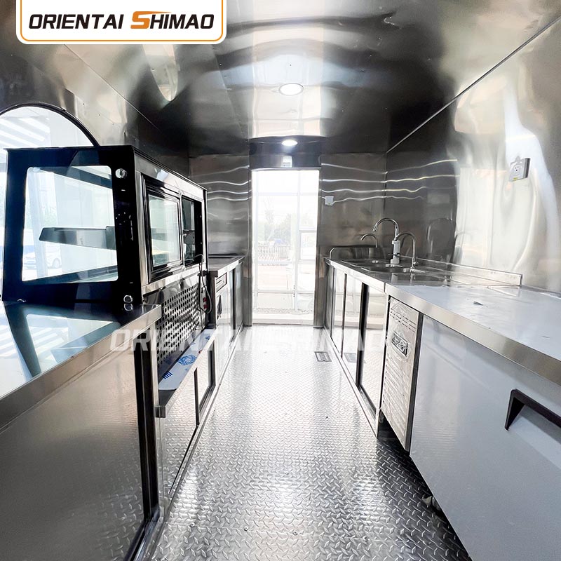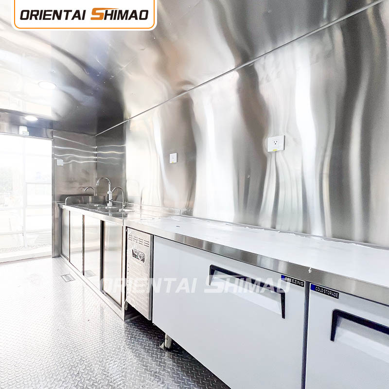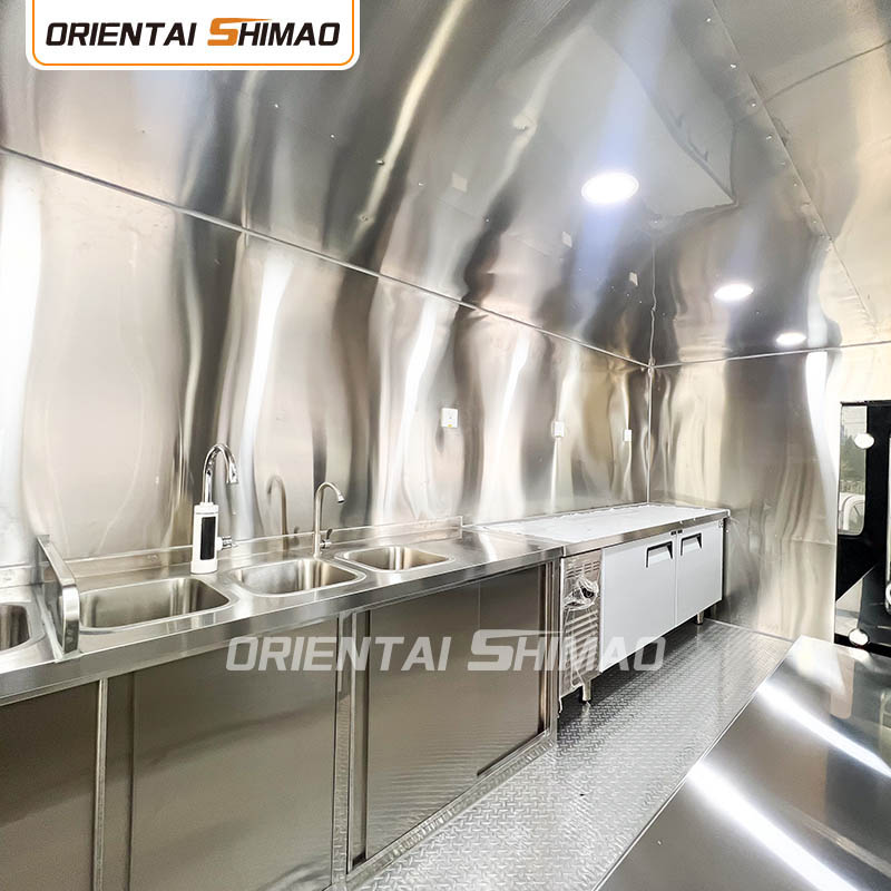 স্টেইনলেস স্টিলের অভ্যন্তর: অভ্যন্তরটি স্টেইনলেস স্টিল দিয়ে তৈরি, একটি শক্তিশালী এবং টেকসই অভ্যন্তর নিশ্চিত করে যা পরিষ্কার করা এবং বজায় রাখা সহজ এবং খাদ্য স্বাস্থ্যবিধি মান পূরণ করে। স্টেইনলেস স্টিলের ব্যবহার শুধুমাত্র খাদ্য ট্রাকের পরিষেবা জীবনকে উন্নত করে না, তবে খাদ্য তৈরির প্রক্রিয়ার স্বাস্থ্যবিধি এবং নিরাপত্তা নিশ্চিত করে।