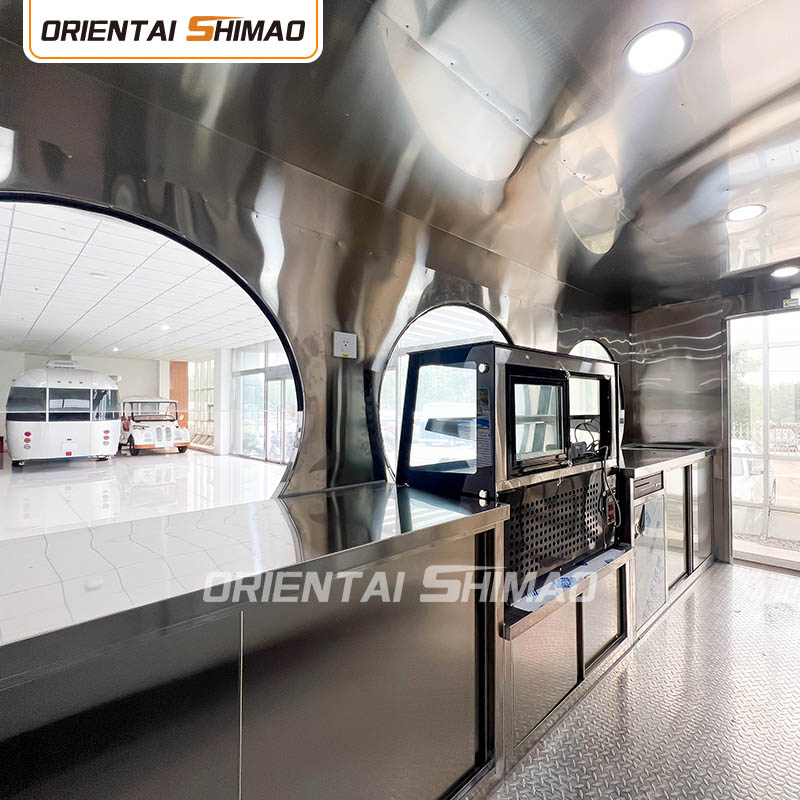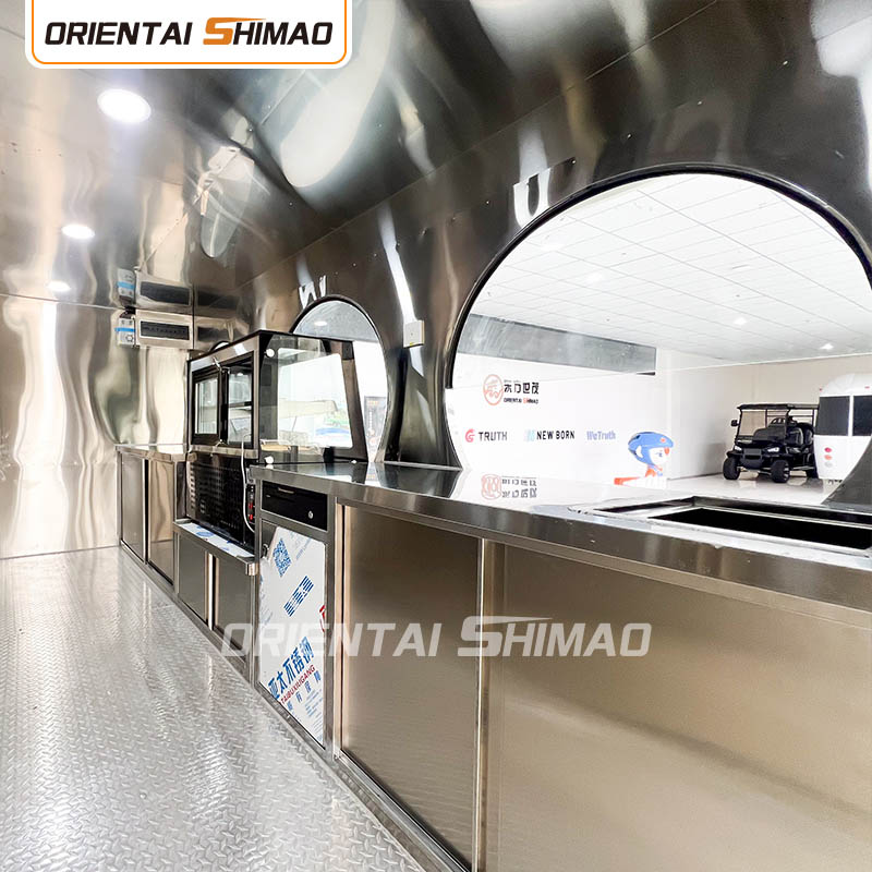 গোল্ডেন স্টেইনলেস স্টিল: ফুড ট্রাকের বাইরের অংশটি উচ্চ মানের গোল্ডেন স্টেইনলেস স্টিল দিয়ে তৈরি। এই উপাদানটি শুধুমাত্র চমৎকার জারা এবং ঘর্ষণ প্রতিরোধের নয়, তবে সোনার চেহারাটি চাক্ষুষ সৌন্দর্য এবং উচ্চ-গ্রেড অনুভূতি বাড়ায়, যাতে খাদ্য ট্রাক বিভিন্ন পরিবেশে দাঁড়াতে পারে।