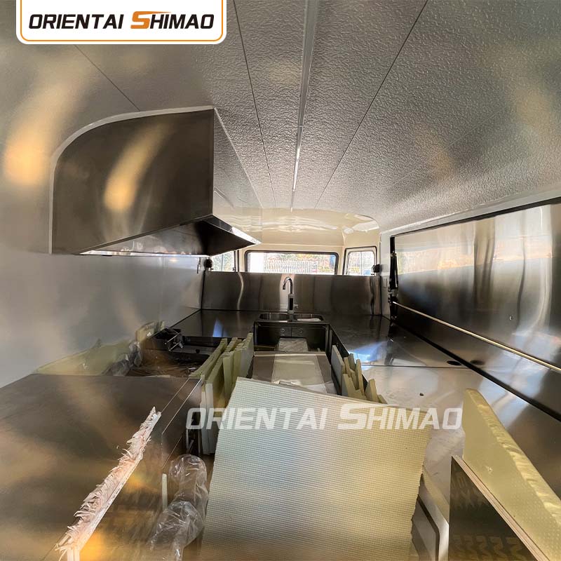 স্টেইনলেস স্টিলের অভ্যন্তর: অভ্যন্তরটি স্টেইনলেস স্টিল দিয়ে তৈরি, একটি শক্তিশালী এবং টেকসই অভ্যন্তর নিশ্চিত করে যা পরিষ্কার করা এবং বজায় রাখা সহজ এবং খাদ্য স্বাস্থ্যবিধি মান পূরণ করে। স্টেইনলেস স্টিলের ব্যবহার শুধুমাত্র খাদ্য ট্রাকের পরিষেবা জীবনকে উন্নত করে না, তবে খাদ্য তৈরির প্রক্রিয়ার স্বাস্থ্যবিধি এবং নিরাপত্তা নিশ্চিত করে।