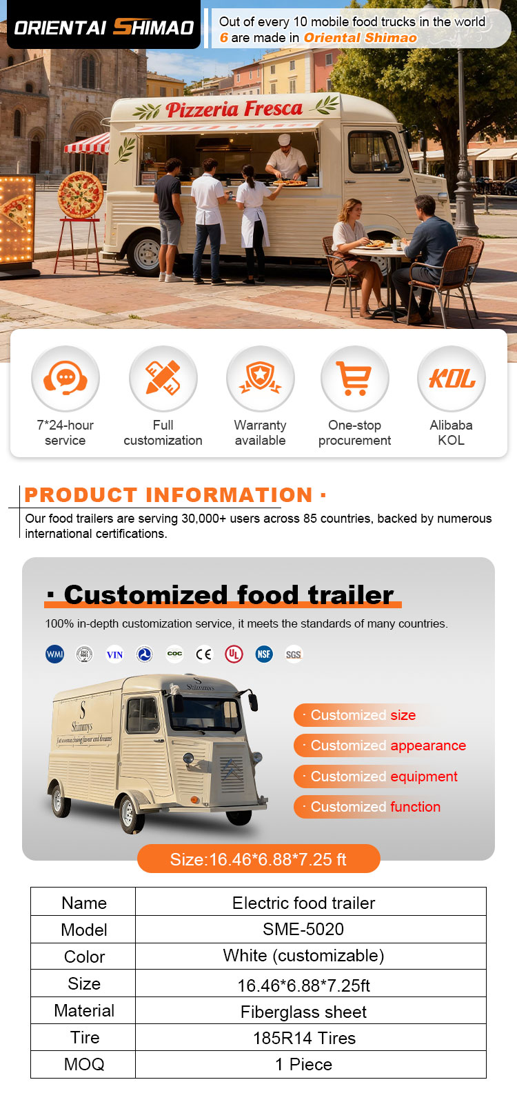 আমরা বিক্রয়ের জন্য মোবাইল ফুড কার্ট অফার করতে পারি সার্টিফিকেশন: DOT, CE, SGS, SCI, ISO, COC,
